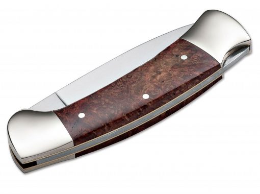 El Magnum Stiletto está inspirado en la tradicional navaja italiana. Con un bloqueo de revestimiento, la cuchilla se bloquea desde 440A. Para mayor seguridad, también está equipado con una protección para las manos a doble cara. El aliso de acero inoxidable le da al cuchillo la estabilidad necesaria. Los mangos están hechos de madera laminada. Con clip.
