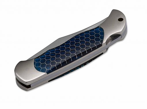 Una elegante navaja para hombres con sofisticación técnica. El cuerpo de la cuchilla consiste en dos placas de titanio sólidas con mandíbulas integrales. El fresado de gran superficie absorbe las conchas G10 contorneadas y garantiza un buen manejo y una apariencia elegante.