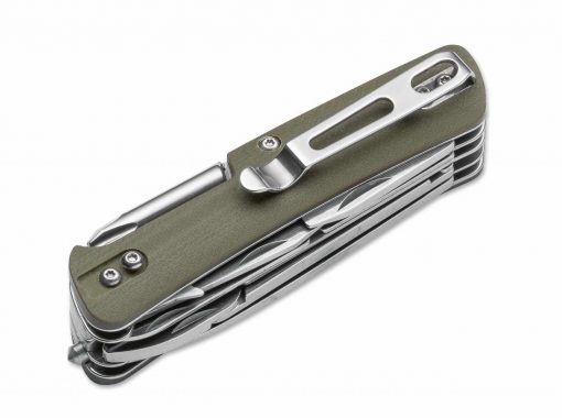 Diseñado por Chad Los Banos, el Böker Plus CLB Kerambit se basa en un marco sólido, un agarre texturizado G10 y una posición de la mano notable. La cuchilla 440C presenta un recubrimiento de titanio y ofrece excelentes características de corte con su tantoforma recurvo combinado. Con mosquetón, cuya sien está bajo tensión de primavera. Con clip convertible (inclinable hacia arriba / abajo).