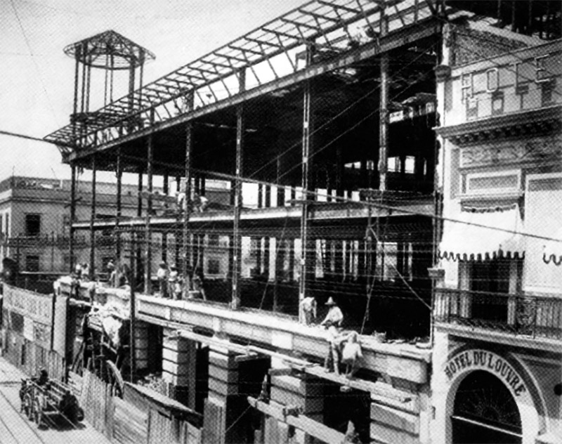 ETAPA DE CONSTRUCCIÓN, vista del inicio de la colocación de la fachada, Av. 16 de Septiembre (8 de abril de 1899).