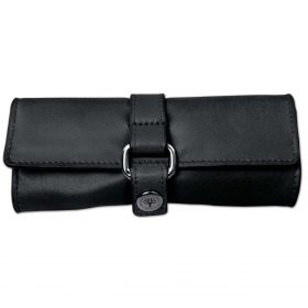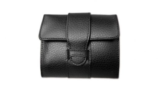 Estuche de cuero negro procesado de alta calidad, adecuado para todos los tamaños de afeitado estándar. Para transportar las maquinillas de afeitar, la bisagra de la hoja se inserta a través de la abertura en el extremo de la caja. Entrega sin maquinilla de afeitar.