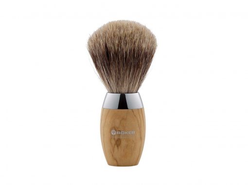Brocha de afeitar de alta calidad para los amantes del estilo de vida mediterráneo, que se hace a mano. Los pelos del cepillo están hechos de pelo de tejón fino y están formados a mano, de modo que se conserva la suavidad natural. El mango noble está hecho de madera de olivo seleccionada a mano y pulido, para ser ensamblado posteriormente con piezas de metal cromado a mano. Esta elaborada mano de obra garantiza la mejor sensación y una larga vida útil.