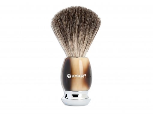 Esta brocha de afeitar hecha de hermosa resina en el cuerno de color marrón está equipada con pelo de tejón puro. Con esta cualidad básica entre los tipos de cabello natural, los cabellos individuales son algo más fuertes, pero no obstante suaves y mucho más flexibles que las cerdas. Quien prefiere un cepillo para tejones y quiere lograr un efecto de masaje un poco más fuerte, está bien aconsejado con esta calidad